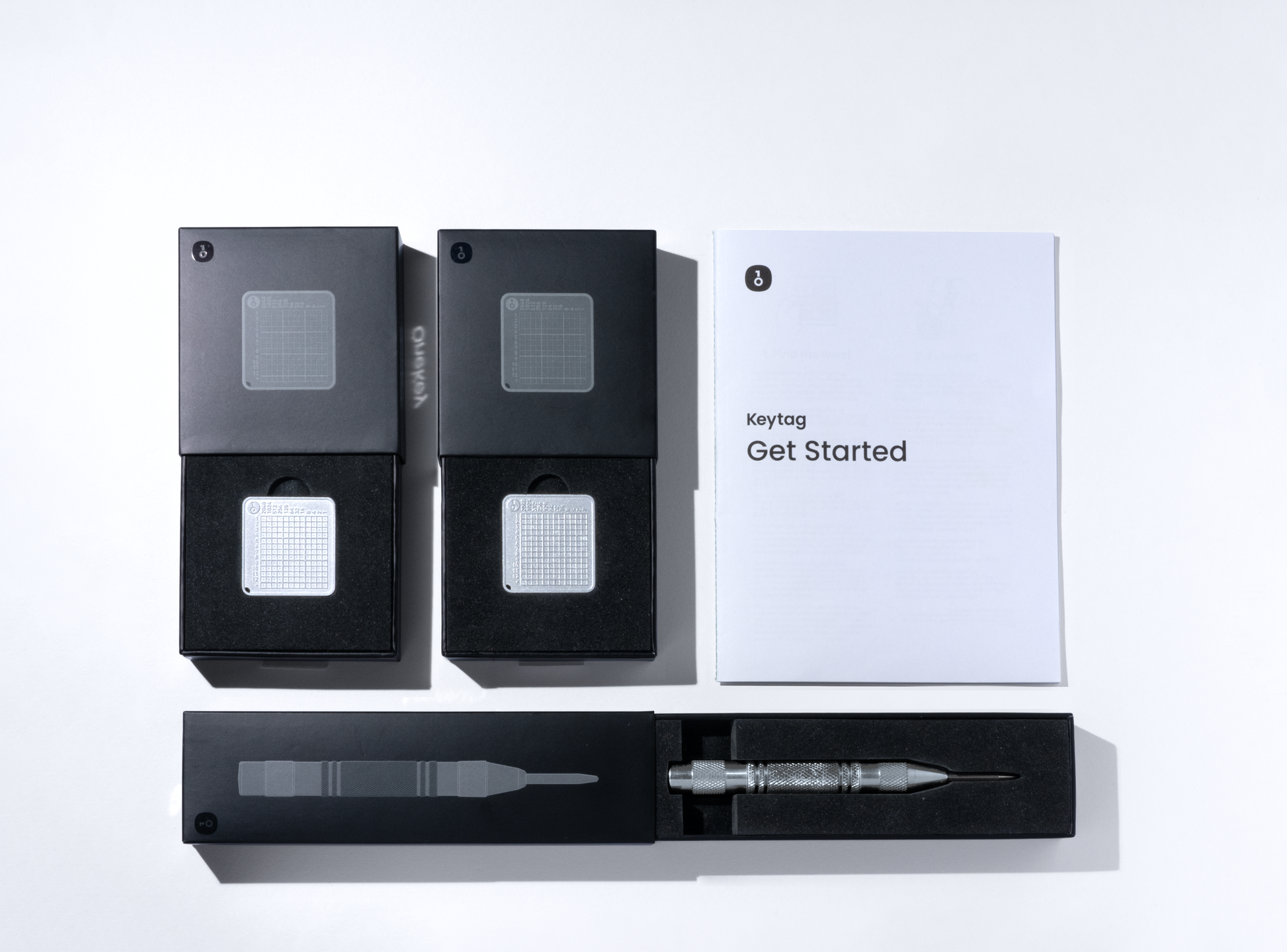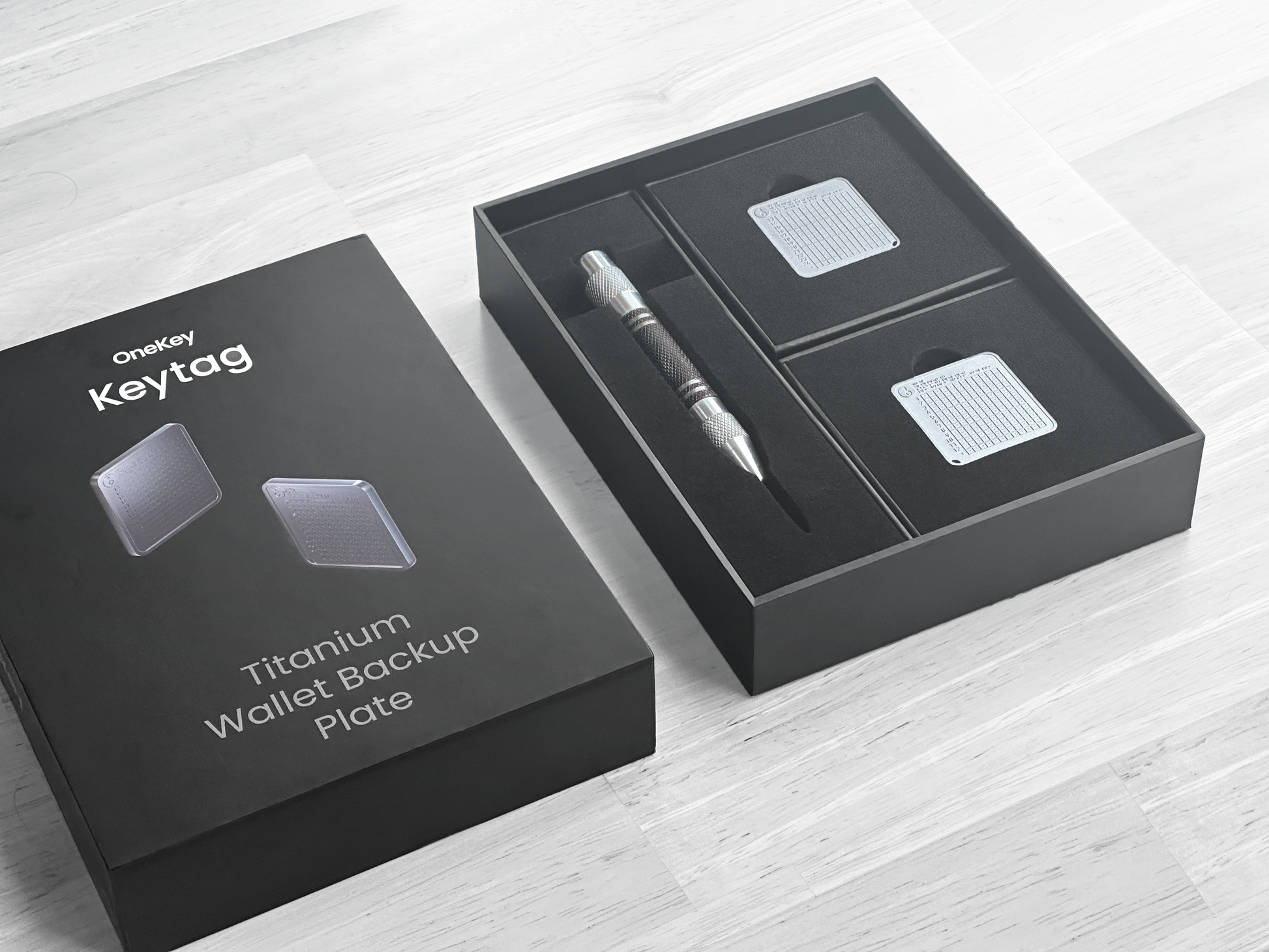 Leistungsstarkes Brieftaschen-Backup-Kit aus Titan in Flugzeugqualität, mit 2 Kopien von KeyTag im Kit enthalten.